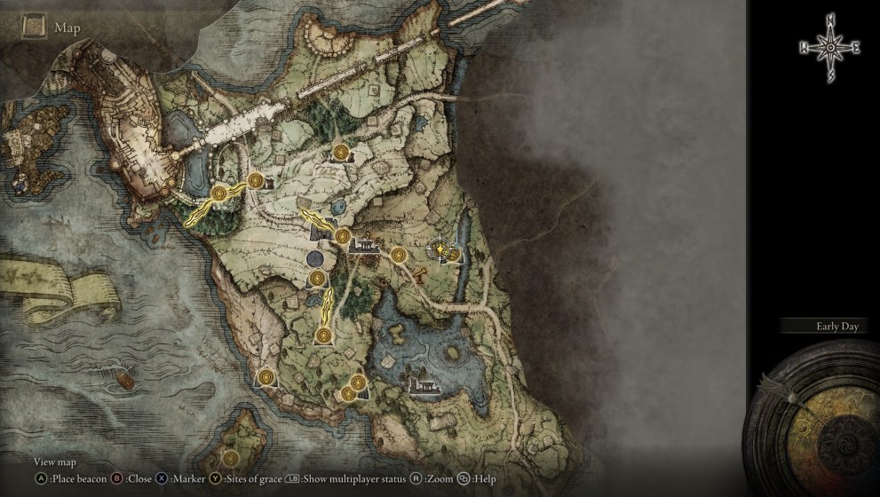 - Once you’re in Limgrave and have access to the open-world, head northwest, past the Gatefront Ruins Site of Grace.