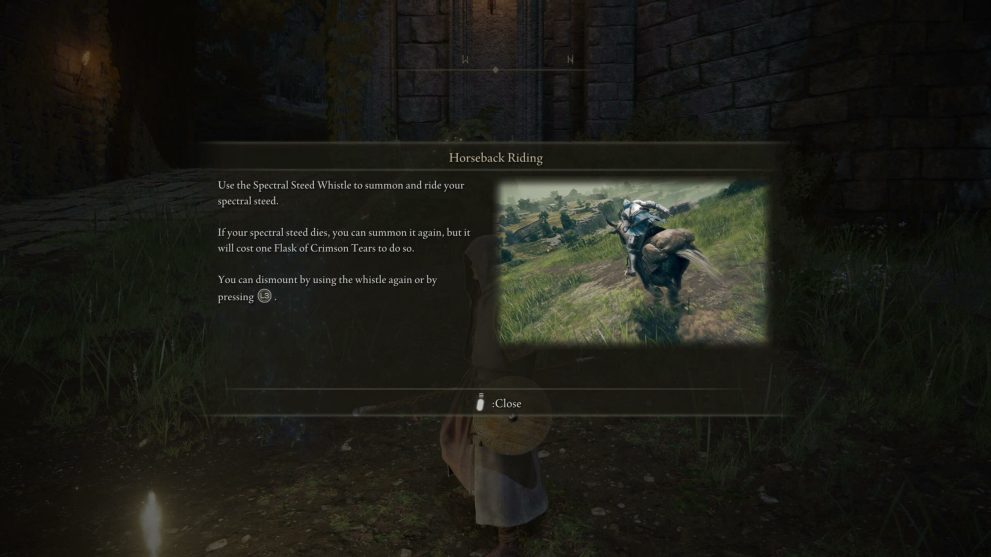 - After having received the Spectral Steed Whistle from Melina (in Limgrave), equip it to your item slot. This can be done via the inventory screen (press the option button and select inventory) or by cycling your quick-slot items by using the d-pad.