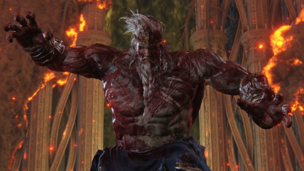 A much easier fight compared to the second phase, Godfrey will show off his might with a bevy of physical attacks with the axe and his stomps. At the onset, Godfery will jump high into the air before throwing his axe and crashing into you, so get ready to dodge.
