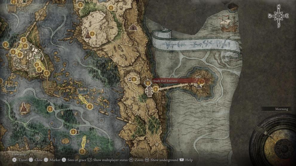 - Head to the Carian Study Hall, located on the eastern side of Liurnia of the Lakes.