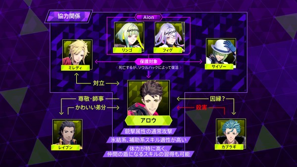 First of all, we meet Raven. He’s a former member of Yatagarasu and used to be a top-notch summoner, but now he’s retired and runs an orphanage. He’s very sociable and loves children. He speaks calmly and he’s very caring. He’s like a mentor figure to the hero Arrow, and calls him little brother. Ringo and her team visit him to ask for advice during their investigation.