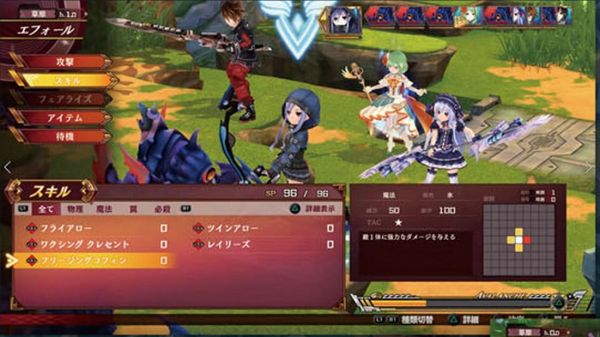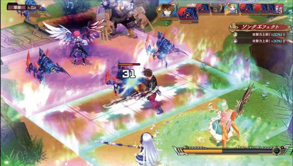 The game’s battles are fought on grid battlefields and character positioning, orientation, and elevation will influence the outcome of actions. In combination with the song mechanic, this creates highly tactical battles.
