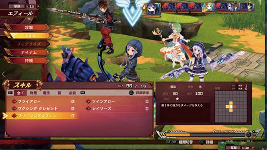 The game’s battles are fought on grid battlefields and character positioning, orientation, and elevation will influence the outcome of actions. In combination with the song mechanic, this creates highly tactical battles.