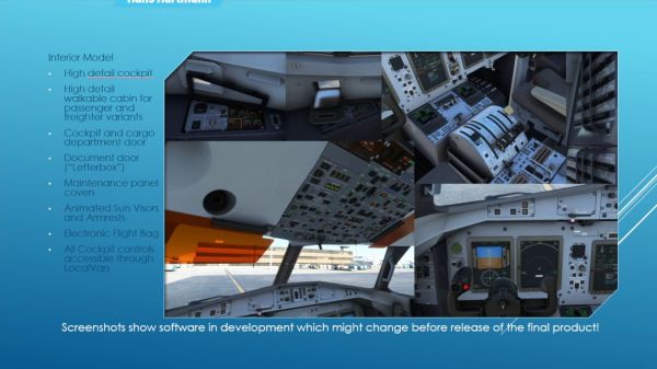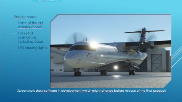 The aircraft will be a high-fidelity one with a state-of-the-art exterior model. Everything is animated, including the doors. The new LED landing lights are also implemented.
