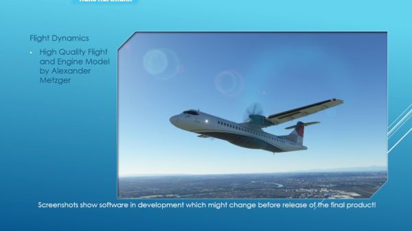The aircraft will have a high-quality flight and engine model by Alexander Metzger (who worked alongside Hartmann on the highly-praised Flight1 ATR for Flight Simulator X). The engine modeled is the PW127M with realistic ITT behavior and fuel flow.
