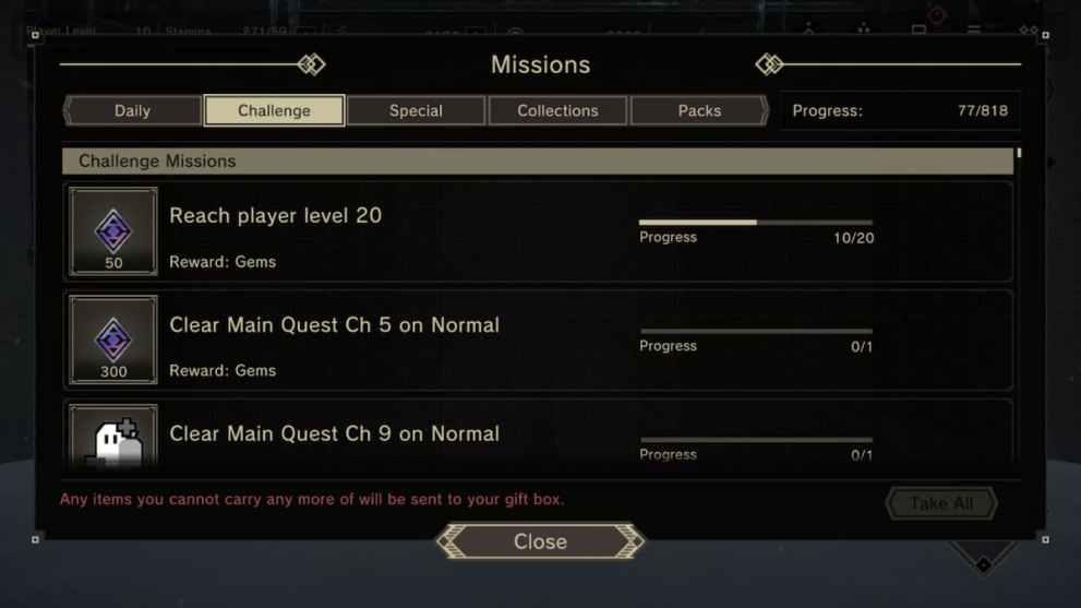 During story segments, you can also click on the upper right corner of the screen to skip the sequence and go directly to the fight. - After completing chapter 1, tap on Missions in the top right corner to claim all mission clear rewards.