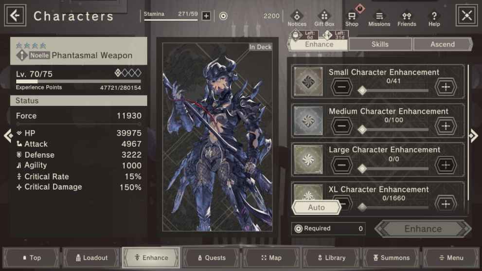 Open the menu and tap on the Enhance option, then choose the character you want to level up. We only recommend doing this for 4-star units that you’ll use in your party formation.