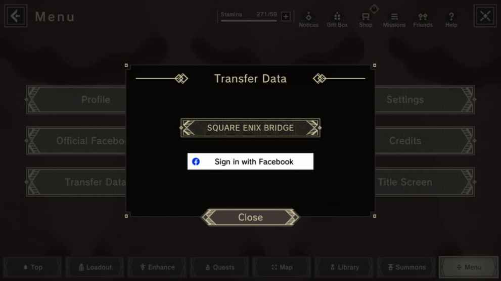 - Once you’re happy with your pulls, make sure to link your account by opening the menu and choosing the Transfer Data option.
