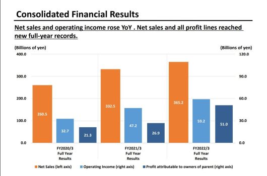 Looking at the whole company, both net sales and operating income grew year-on-year. Both revenue and profits established new full-year records.