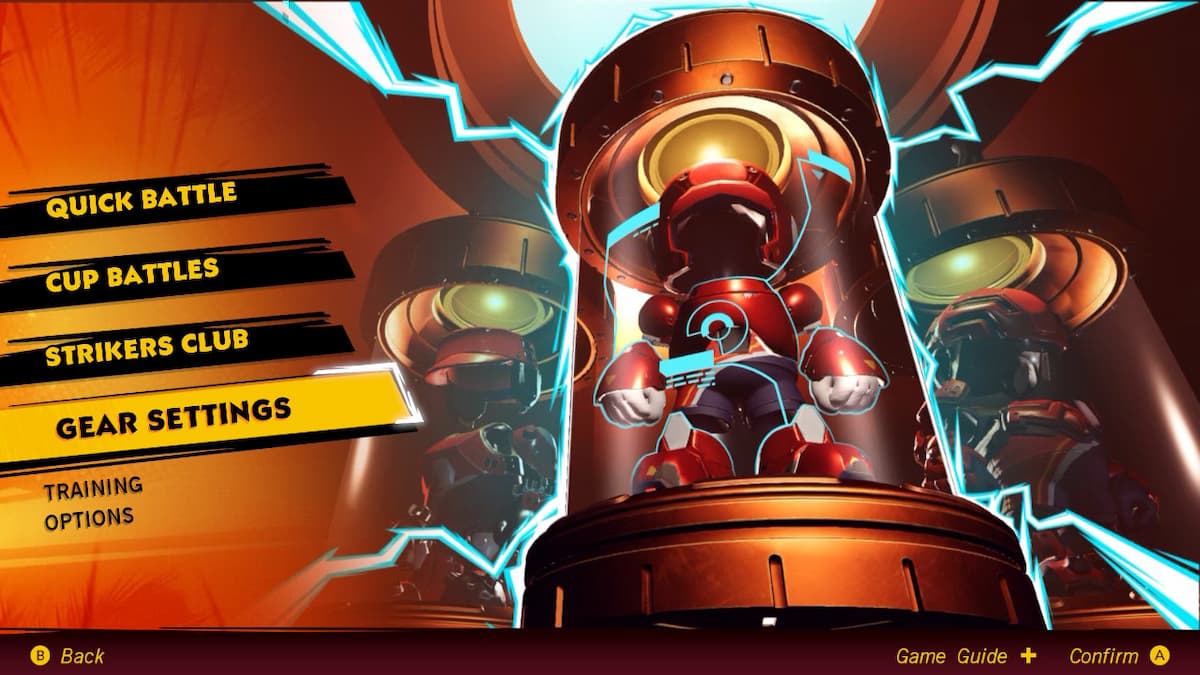 To start out, you’ll need to head on down to Gear Settings from the game’s main menu. Just keep in mind that doing this right from the start isn’t a great idea. Coins are earned by playing matches, so heading in with empty pockets won’t get you too far.