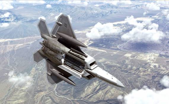 • Highly detailed Head-Up Display (HUD) based on Air Force specifications and real world F-22A primary HUD navigation mode display