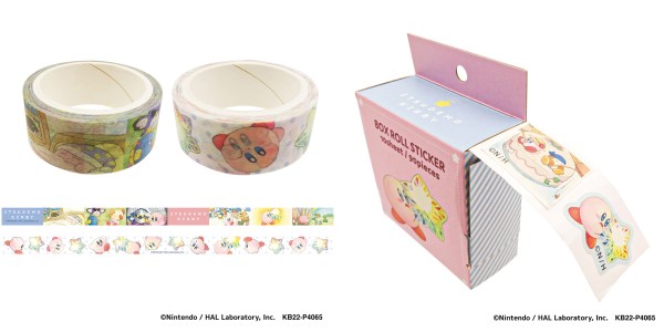 This merchandise will include items such as drinking glasses, masking tape, stickers, acrylic key chains, handkerchief towels, and more, each featuring Kirby and friends as depicted in the Anytime Kirby picture books. This artwork features a soft, pastel design and color scheme that is friendly and welcoming to children.