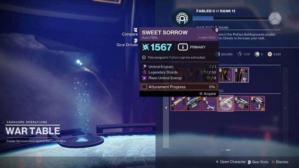 After obtaining enough Energy, head back to the War Table at the Helm. After collecting at least nine Risen Umbral Energy, you can then buy your very own copy of Sweet Sorrow.