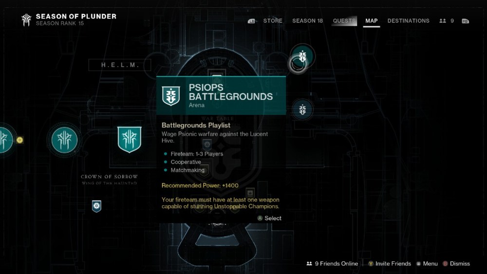 After claiming the Synaptic Spear, go into your map and select the arena mode, PsiOps Battleground. This is the activity from which you will earn Risen Umbral Energy. (Note: You also have a small chance to earn a Sweet Sorrow upon completion of the mode as well.)