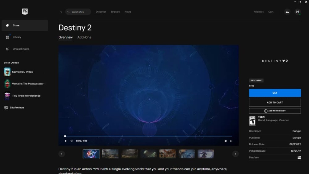 how to get destiny 2 on epic games store