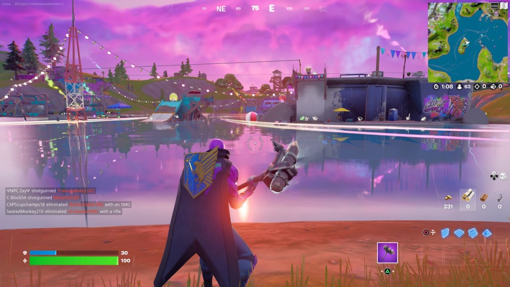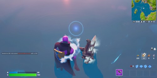 Your end goal is in the middle of Loot Lake. Seeing as you should be about on this island if you’ve been heading straight after the geyser, this is the best landmark to start from.