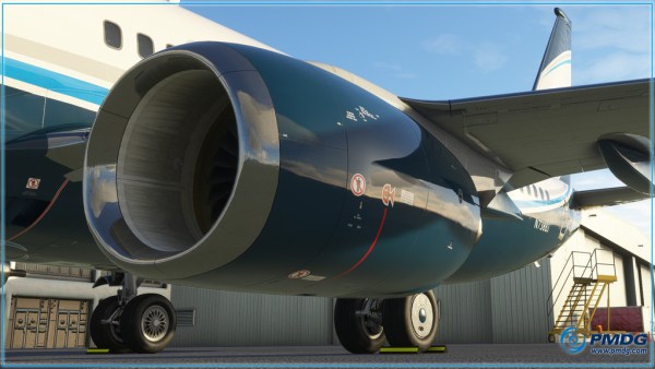 - PMDG’s customized, flight model with enhanced physics augmentation.
