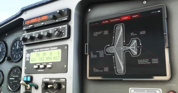 - Simulated walkaround with interactive & animated check items like wheels, control surfaces, prop rotation and tie-down