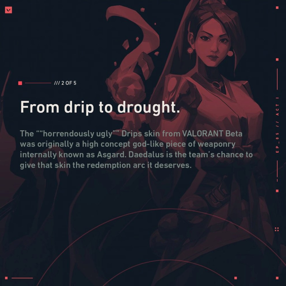 Even monkeys fall from trees, so they say, and indeed it appears as though Riot Games has accidentally confirmed something it probably intended to keep secret a while longer; namely, the next weapon skin bundle to follow Reaver 2.0. Called Daedalus, it’s a design that was actually leaked a few months ago by well-known leaker XTR and is a skin that is apparently as old as the game’s beta. It’s now set to become the newest skin line in just a couple of weeks’ time.