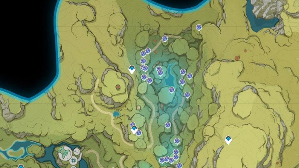 One farming spot we recommend, in particular, is Mawtiyama Forest, which is just northeast of the Palace of Alcazarzaray. There are handy teleporters nearby so you can quickly locate yourself near the forest, then an easy run can be made to farm 20 or so. Most of these clusters are on the forest floor, though some are in locations that you will need to ascend upward to using grapple points, so keep a close eye out for them.