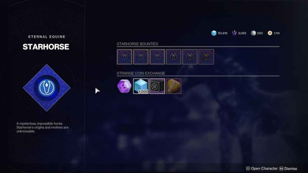 First and foremost, the Starhorse sells six bounties, each one costing Strange Coins, and rewarding Strange Coins as well as Paraversal Hauls. Five of them change daily, while the final changes weekly. You can hold only one at a time, so in order to complete them all you must do at least six runs, returning to the Treasure Hoard after each completion.
