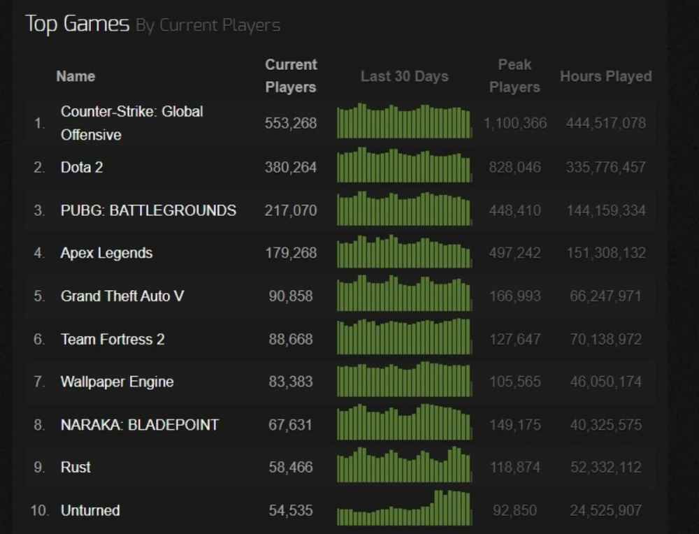 It’s worth noting that the Steam Charts do update quite often, so we’ve taken a screenshot of Unturned breaching the Top 10 earlier today and included it down below: