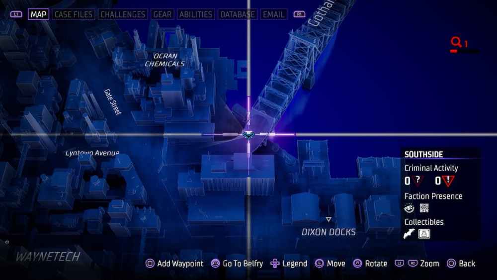 Southside — Located inside an opening underneath the Gotham Bay Bridge. This will be on or near a shipping container. Most of the time when you’re under a bridge, it’s difficult to see much. Be sure to change that by scanning the ol’ AR. If you’re really stumped and haven’t followed the marker, that’s the greatest tool at your disposal.