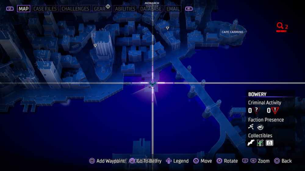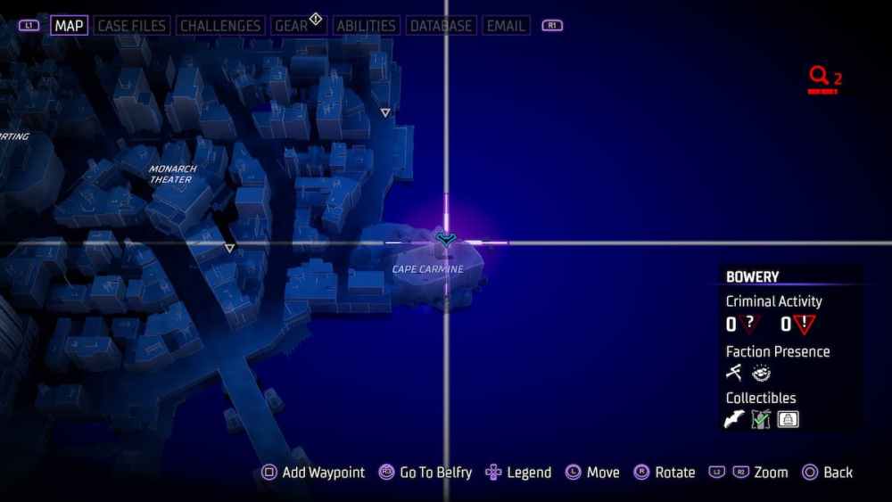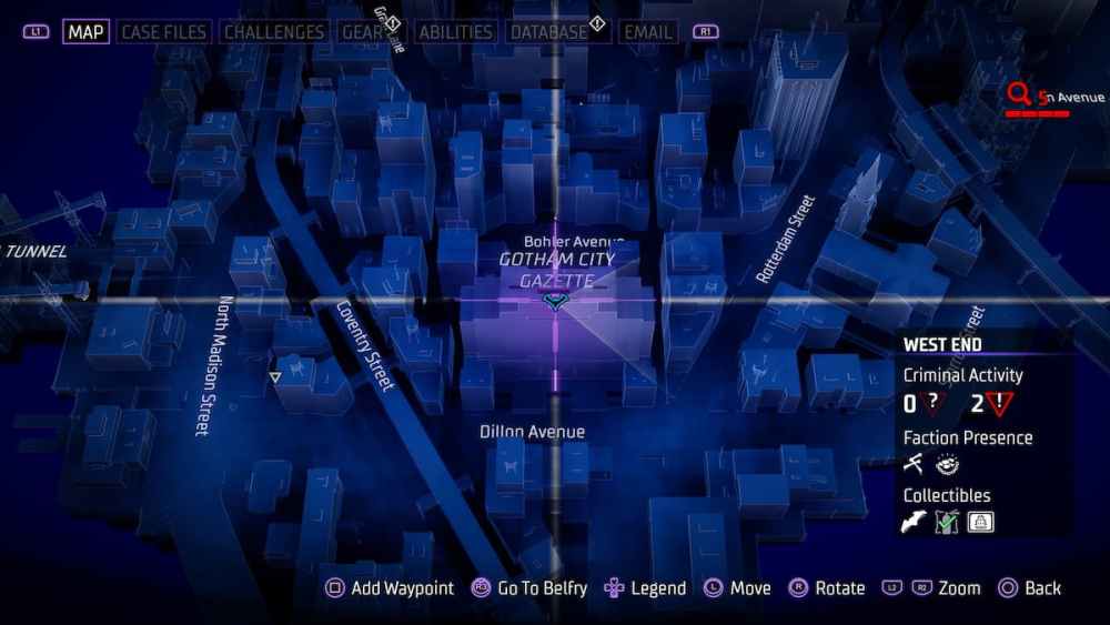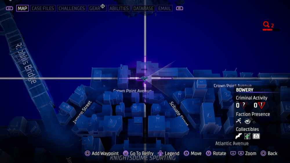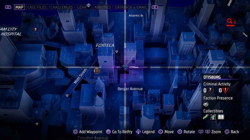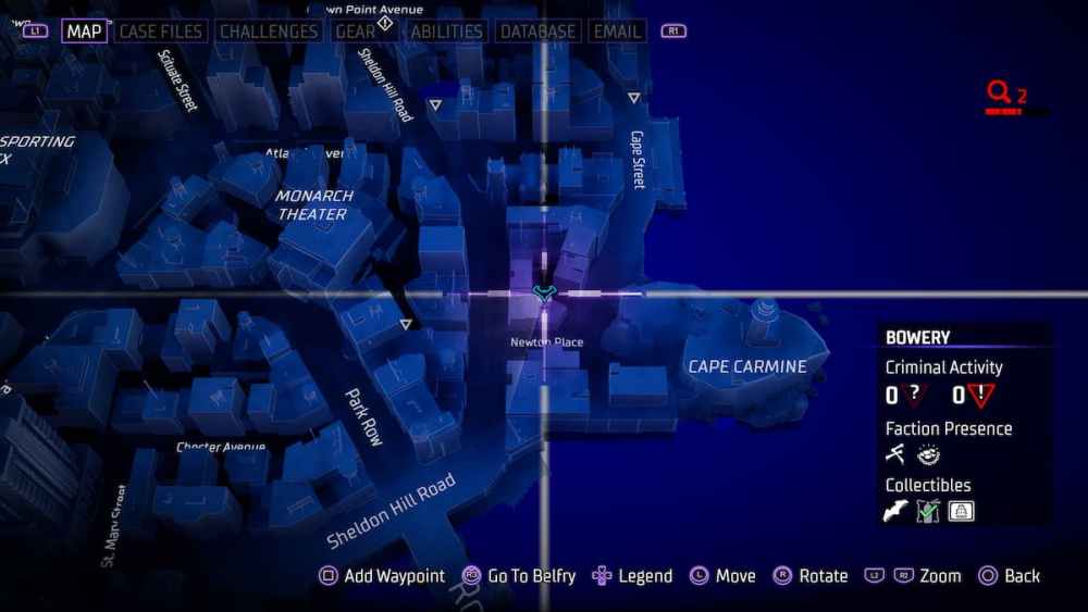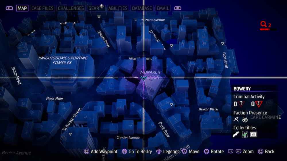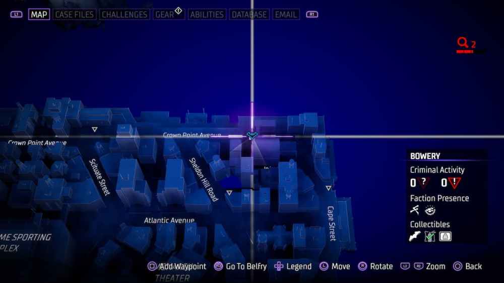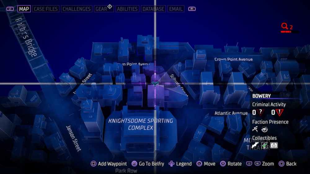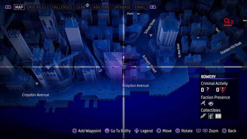 Bowery — Located in an alleyway close to Croydon Avenue. Alleyways can be tricky in Gotham Knights, and utilizing the AR scan in these instances is a smart call.