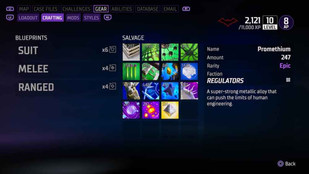 Like with all other crafting materials in the game, Promethium is used for crafting suits, melee and ranged weapons for the four different superheroes you can take control of in Gotham Knights.