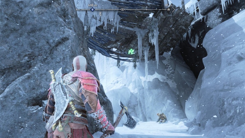 Once you are in this area to continue on Sigrun’s quest, be sure to look for this Raven that is at a longer distance than usual. If you are unable to get it with the Leviathan Axe, come back once you have the Draupnir Spear for an easier time.
