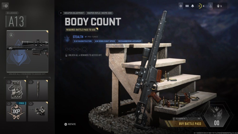 The new battle pass is a bit different than previous Call of Duty seasons, as the reward track is no longer a single line of levels. The pass now consists of multiple sectors, each containing five rewards, and four of the rewards must be unlocked first before unlocking the fifth “High-Value Target” reward. Once a sector has been cleared, players can move on to another adjacent sector. Here are all the sectors’ rewards: