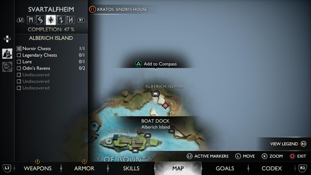 - Grapple up to the area to the left of the chest and select the third Nornir rune.