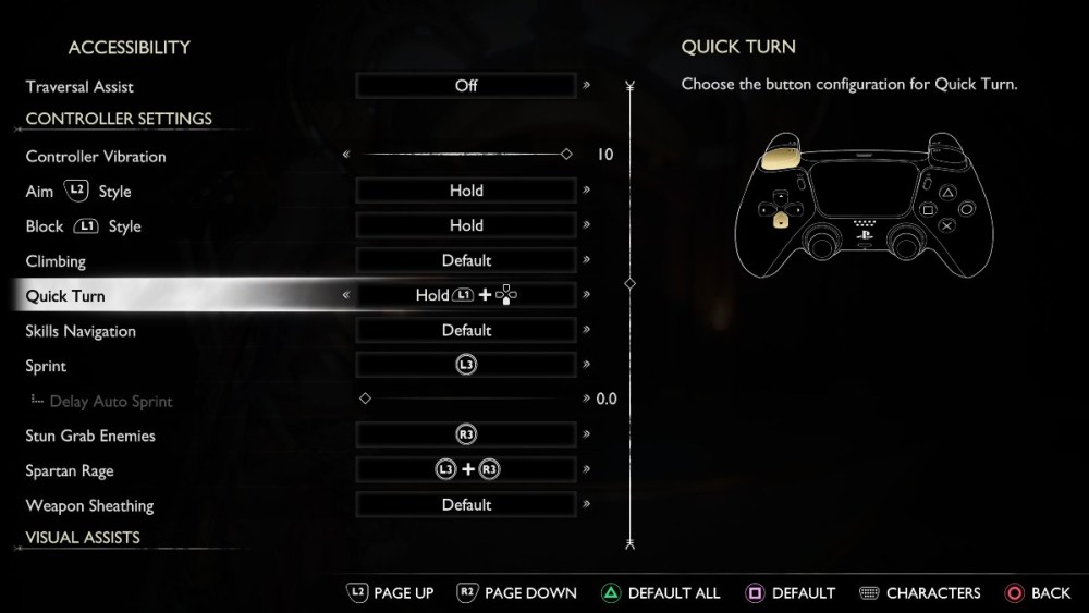 Turning Quick Turn on will allow Kratos to snap 180 degrees in the other direction, making it so that no one can get the drop on him. It definitely takes some getting used to, but combining this with the lock-on feature will help make you untouchable in any battle.