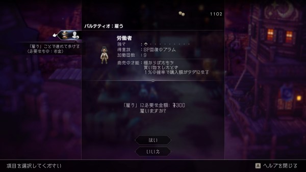 On top of that, the people you hire will also have different effects on gameplay as they basically become your business partners. Some let you purchase items at a discount and occasionally even free, while others are excellent mercenaries.