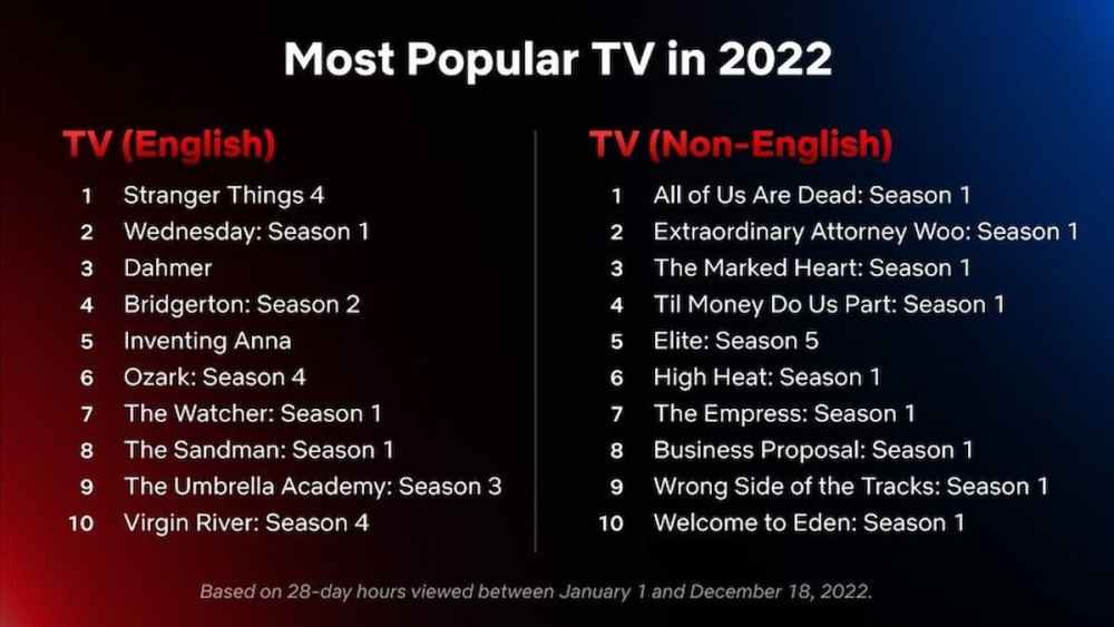 With 2022 coming to a close, Netflix has released lists of its most popular TV shows of 2022, divided by English and Non-English sections. The Non-English side has revealed that one of the most popular shows of 2022 was the K-Drama Extraordinary Attorney Woo, with the series coming in at number two.
