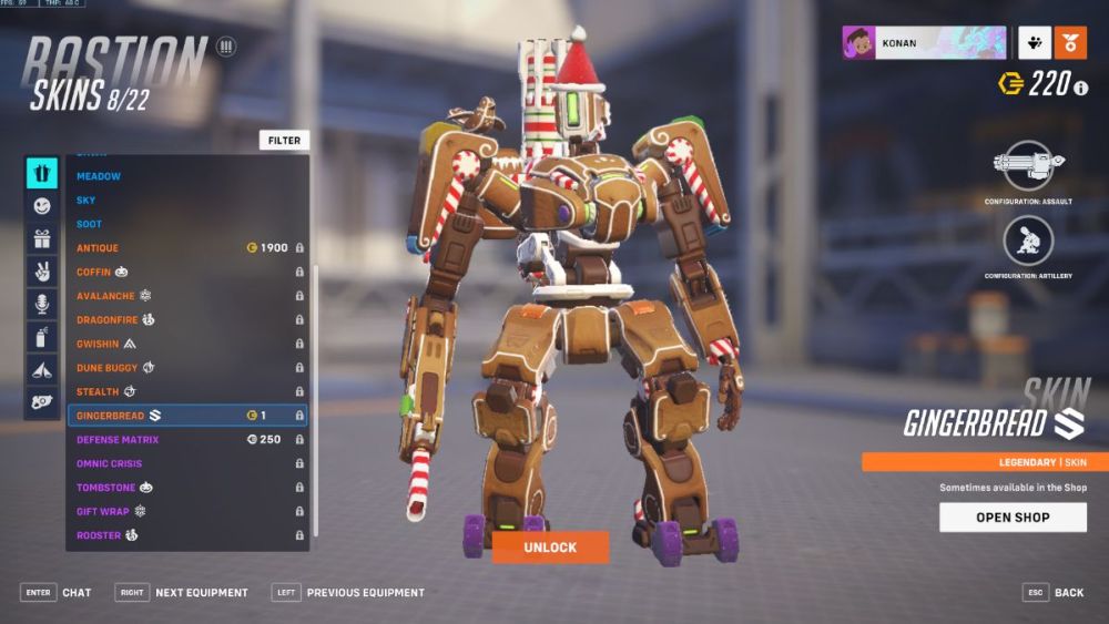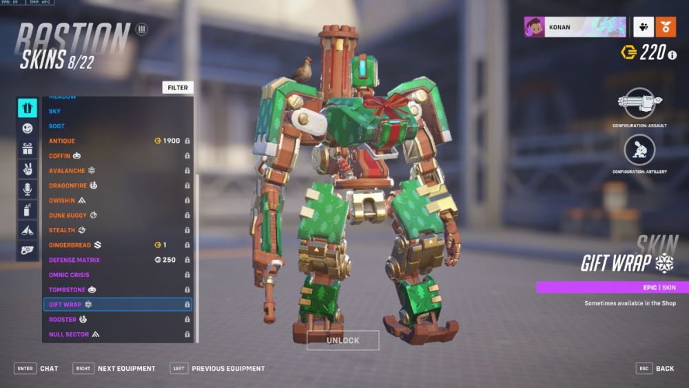 Another limited-time Winter Wonderland skin to make it’s way to Overwacth 2 is Bastion’s new Gingerbread skin, turning everyone’s favorite friendly Omnic into a gingerbread bot, complete with candy-cane decals and gift-wrap patterned turret. This holiday ski is currently in-store for just 1 credit, so be sure to go and grab yourself a deal.