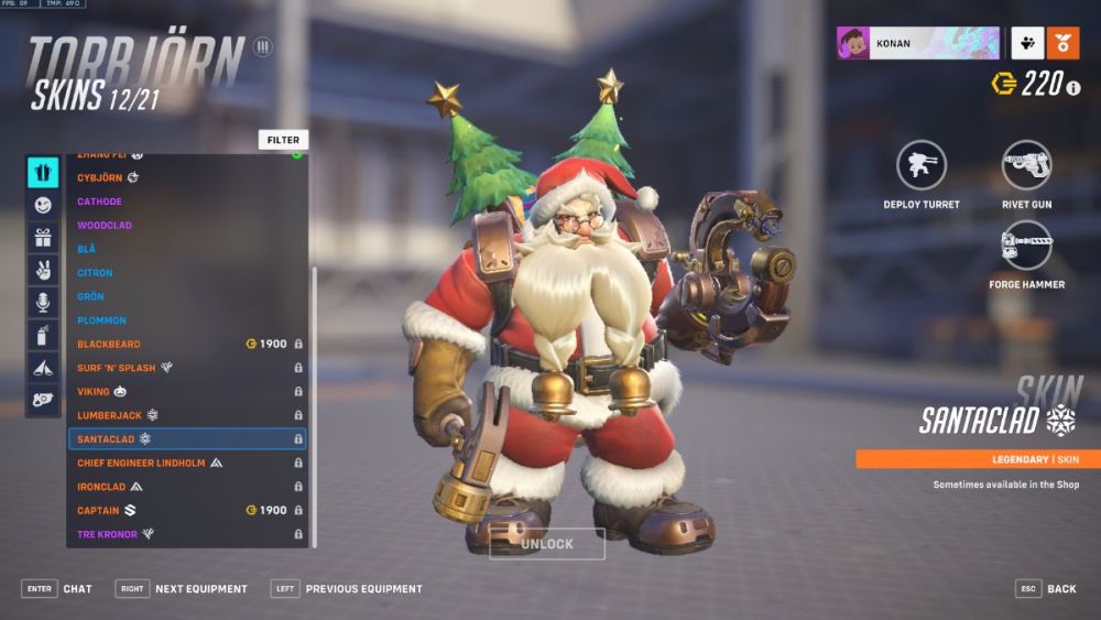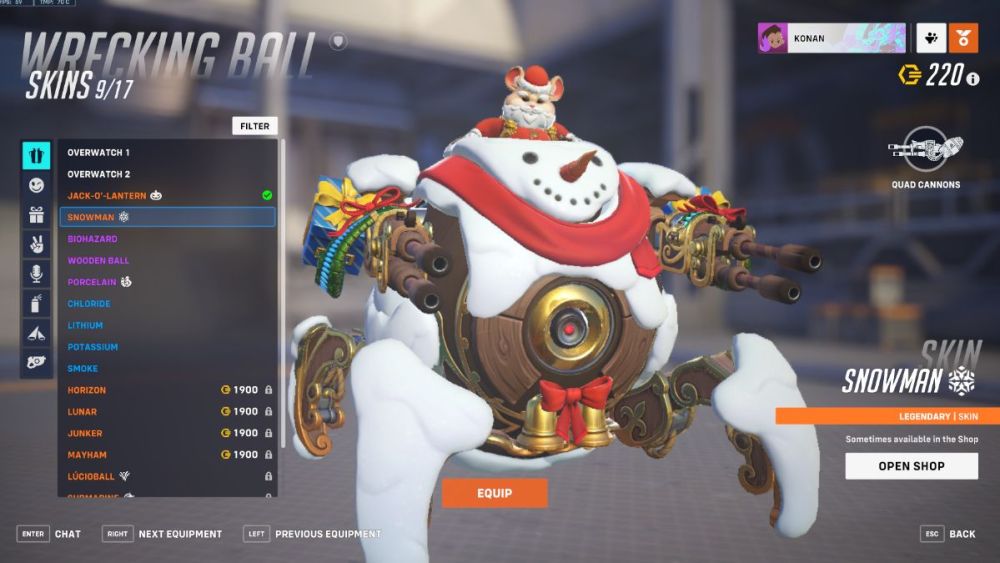 The third and final member of the Winter Wonderland 2022 Santa’s Helpers bundle is Wrecking Ball, showing off his Snowman skin. Is this Legendary not one of the best things in his entire gallery? I mean, just look at little Hammond all dressed up in his Santa outfit. Plus, equipping this skin will let you grapple and roll your way around the battlefield in style. Just like the other two, you can pick this one up from the Store in the Santa’s Helpers bundle, or from Wrecking Ball’s page in the Hero Gallery.
