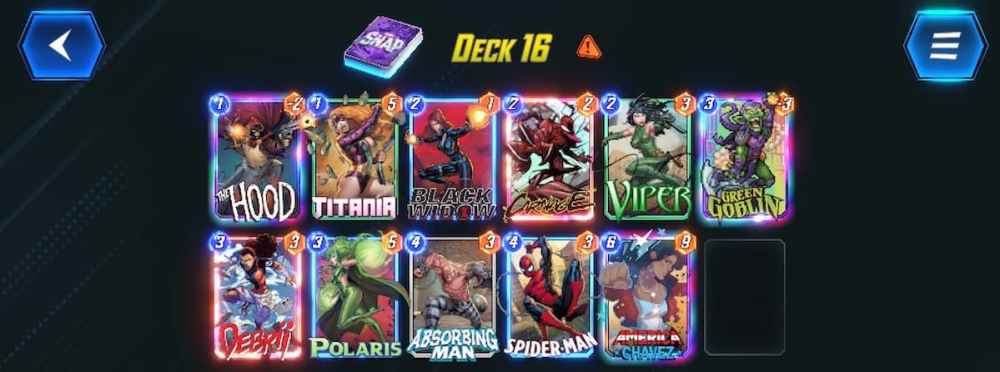 You can also lean fully into a junk-style deck that’s all about filling your opponent’s side of the board with crap. Debrii, Titania, The Hood and Viper combo, and Green Goblin all help with this. The idea here is to keep filling up your opponent’s board, while also keeping Carnage around to destroy any spare rocks you might’ve left on your side.
