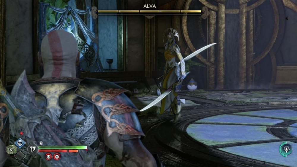 During your trek through the Temple of Light in Vanaheim, you’ll encounter plenty of light elves in varying numbers, but they do little to prepare you for the big baddie Alva herself. She’s fast, agile, aggressive, and deadly in her pursuit of removing Kratos’ head from his shoulders.