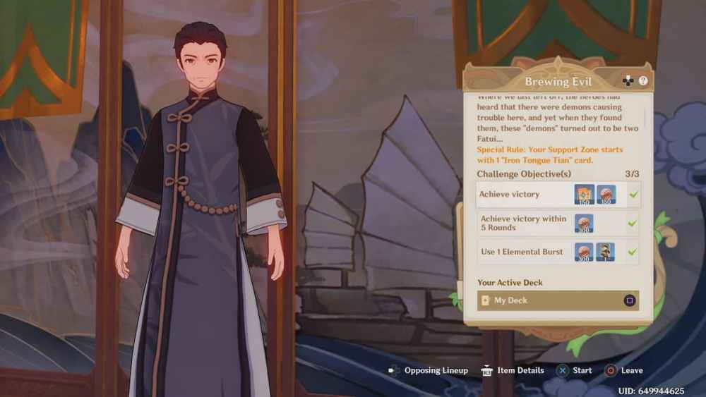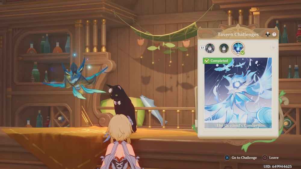 Tavern Challenges can be unlocked when you reach a certain Player Level in the Genius Invokation TCG. Those who meet this requirement will trigger a scene with Prince and Shuyun at the Cat’s Tail, allowing Travelers to play boss battles. For example, players can participate in the Oceanid’s Concern challenge to acquire the Rhodeia of Loch Character card.