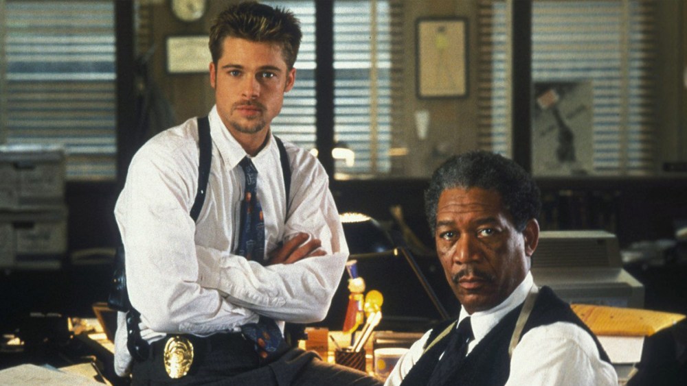 A pair of detectives, Mills (Brad Pitt) and Somerset (Morgan Freeman), must find a serial killer who, inspired by the Bible, has started a seven deadly sins-themed murder spree. As they go into the depths of hell to find the criminal, they also find some things about themselves. The film aesthetic is depressing, dark, mysterious, intense, and rainy, warning the viewer that what they’re seeing is not going to end with sun and rainbows.