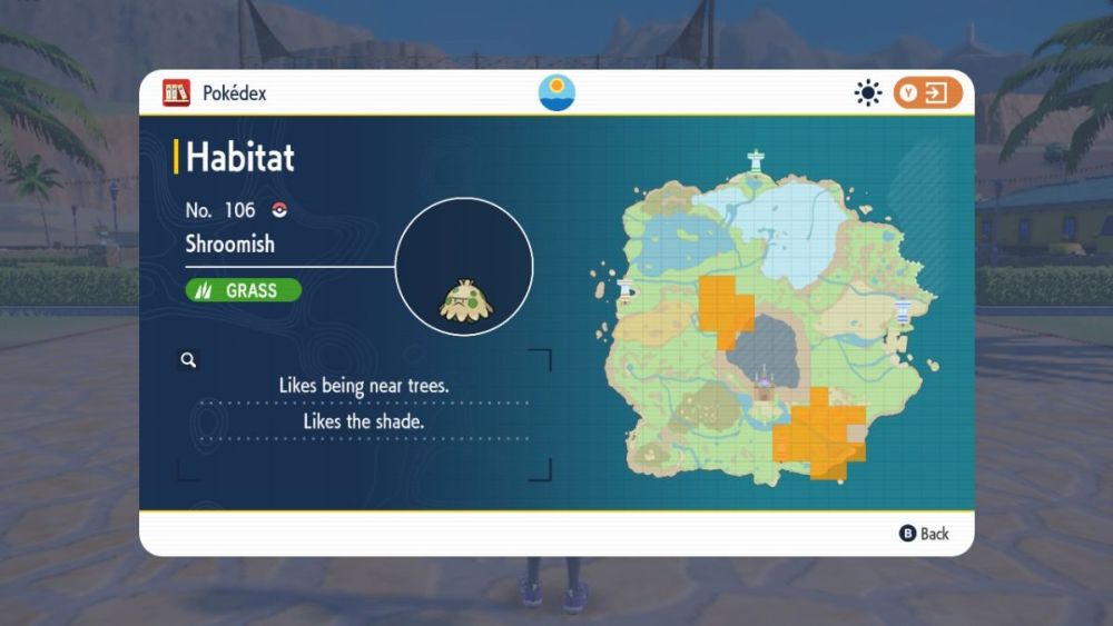 As indicated on the map below, Shroomish is located within two decently-sized habitats within the Paldea Region. More specifically, these habitats are South Province (Area Five) and West Province (Area Three). As noted in its Pokedex entry, Shroomish can be found near trees and likes to hang out in the shade, so keep this in mind for your search.