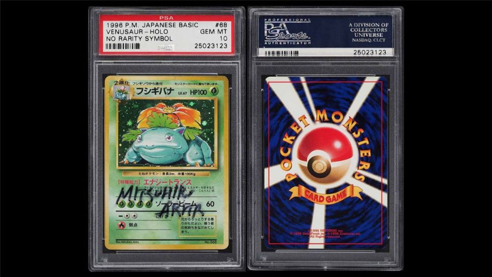 While a regular Base Set Venusaur Holo is currently listed to be worth up to $115,141 on PSA, this Venusaur variant is a Japanese print error missing the rarity star symbol in the bottom right corner, further increasing the value. This specific Venusaur that sold for a shocking $55,000 also has the signature of none other than the card’s illustrator, Mitsuhiro Arita.