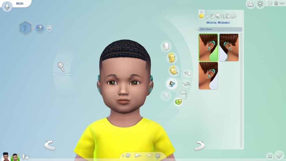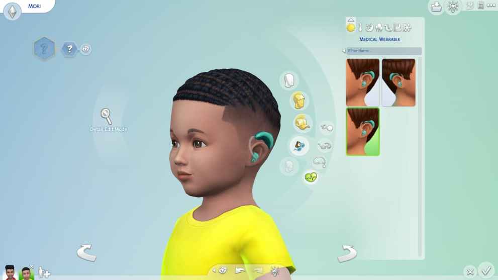 The Medical Wearables category can be found in the Body and Face Accessories section within The Sims 4 CAS. Every item has a variety of colors to choose from, including pink, green, and black. It should be noted that toddlers can only wear hearing aids and cannot access other items in this section.