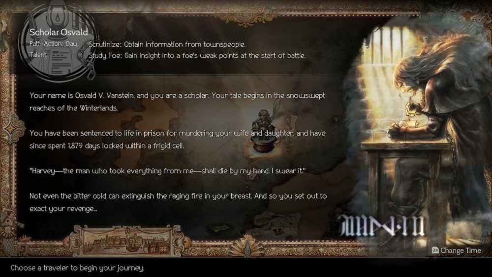 In addition to that, the Scholar also starts with the innate ability to immediately identify an enemy’s weakness when you encounter them in battle. This will make your life so much easier as you’re traveling around the world, so yeah, pick Osvald if you wanna start on easy mode.