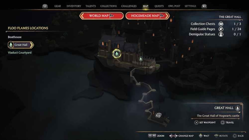 Instead of traveling downwards at the Central Hall Floo Flame, players must go up the stairs towards the left. During this time, you’ll need to take a right at the stairwell to locate the Daedalian Key in Hogwarts Legacy.