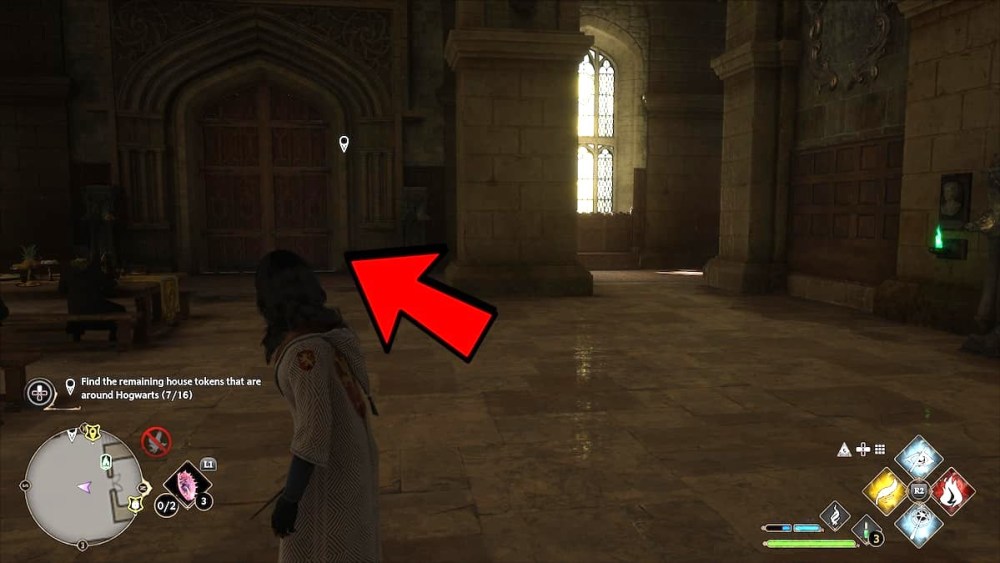 The last Daedalian Key Great Hall location is near the Floo Flame destination, where you must go through the other door. After this, players can walk to the entryway to uncover the following key (it will be right next to this entrance):