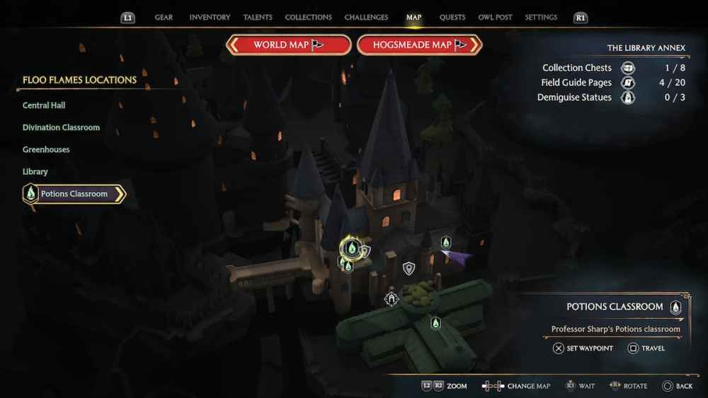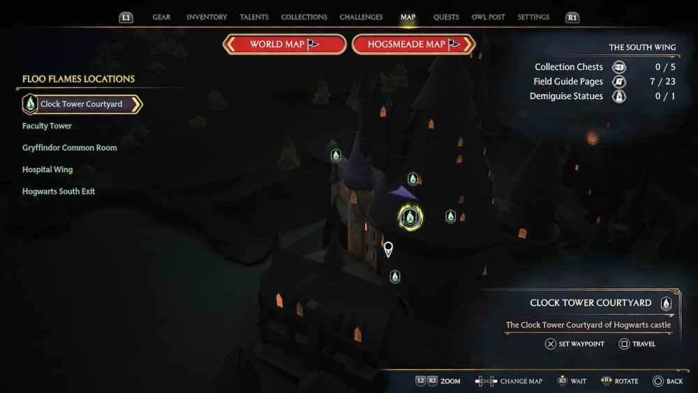 After you fast-travel to the South Wing’s Faculty Tower Floo Flame, take a left and go through the door (Mr. Moon is typically here if you haven’t finished his quest).
