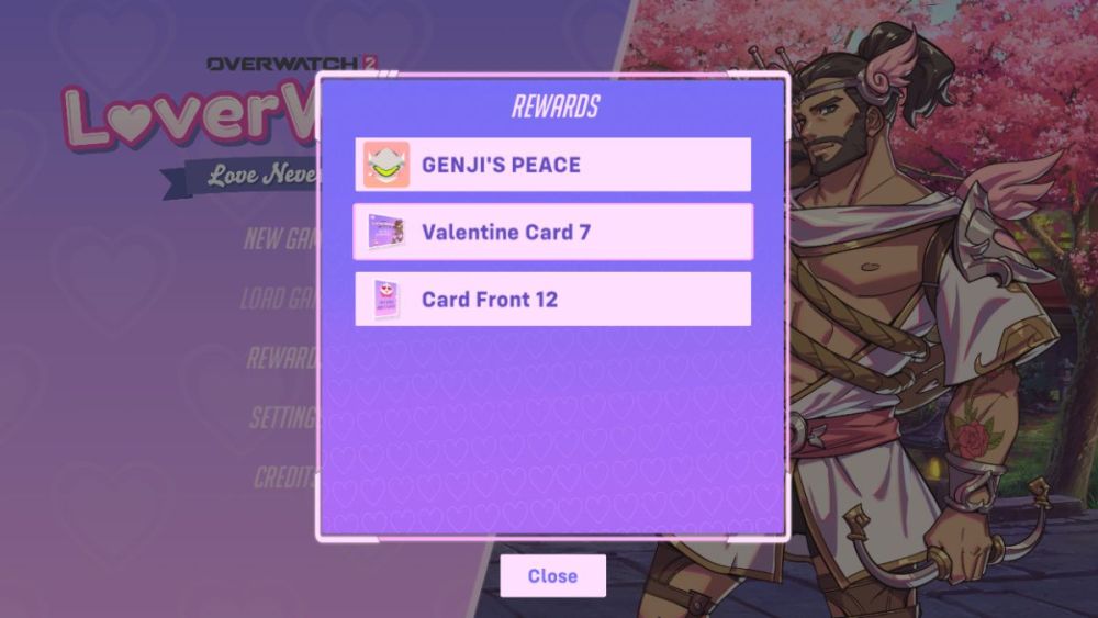 By embarking on your journey of love with Genji and completing his LOVERWATCH story, you will receive a small collection of Valentine’s Day-themed rewards. Here is a list of every reward you will receive after completing Genji’s route.