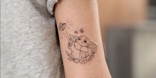Any tattoo with Grogu is going to be a winner, and this one is a great size that has nice details without becoming too much to look at. Dotwork and linework tattoos lend themselves nicely to small subjects in small spots on the body, and what better small subject than The Child himself?